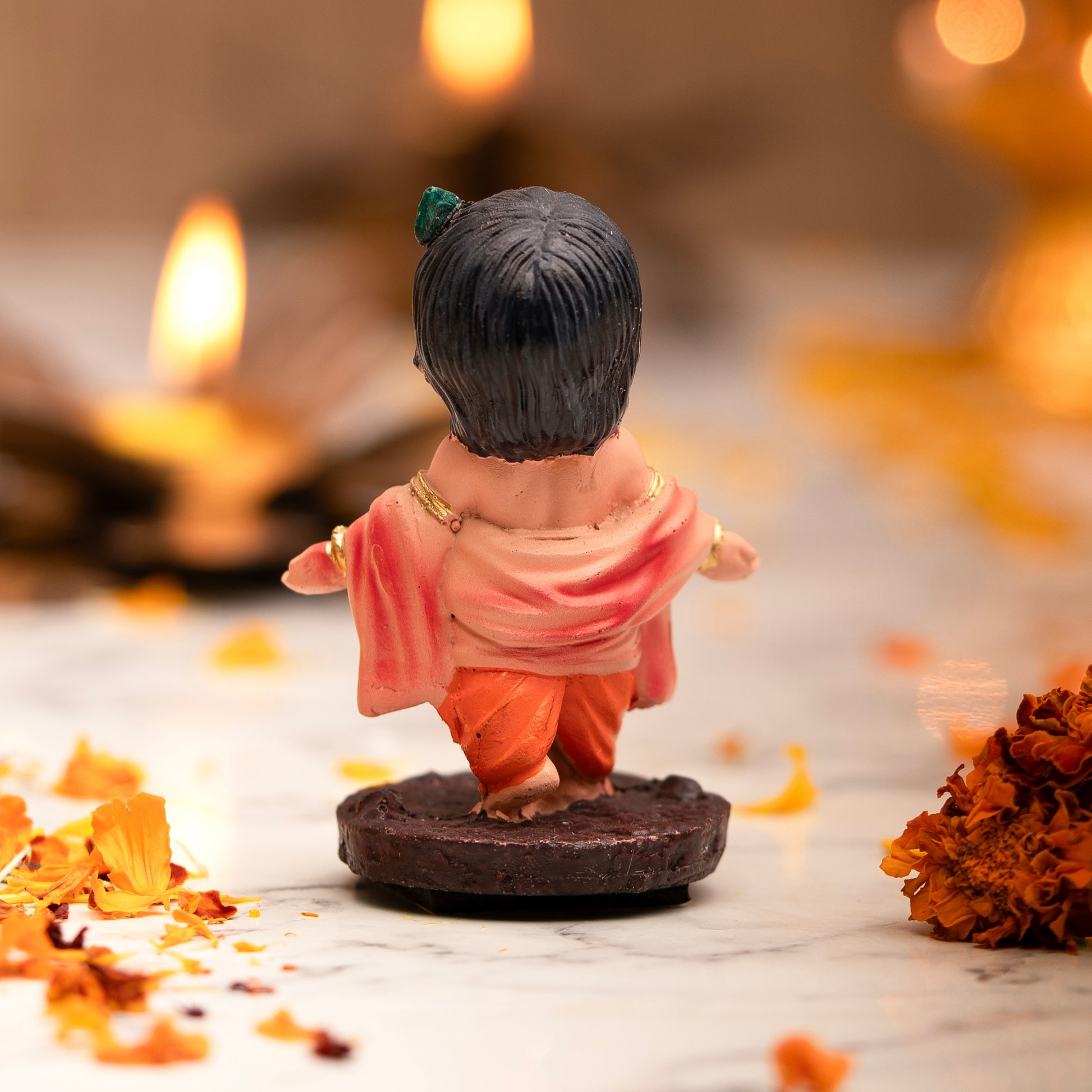 Bring divine blessings and joy to your journey with this Bal Krishna Idol, crafted for your car dashboard, or office space. Featuring Baby Krishna in a playful and blissful pose, this idol radiates positivity and devotion. Made from premium-quality resin, it showcases intricate detailing, vibrant hand-painted colors, and a sturdy base for stable placement.