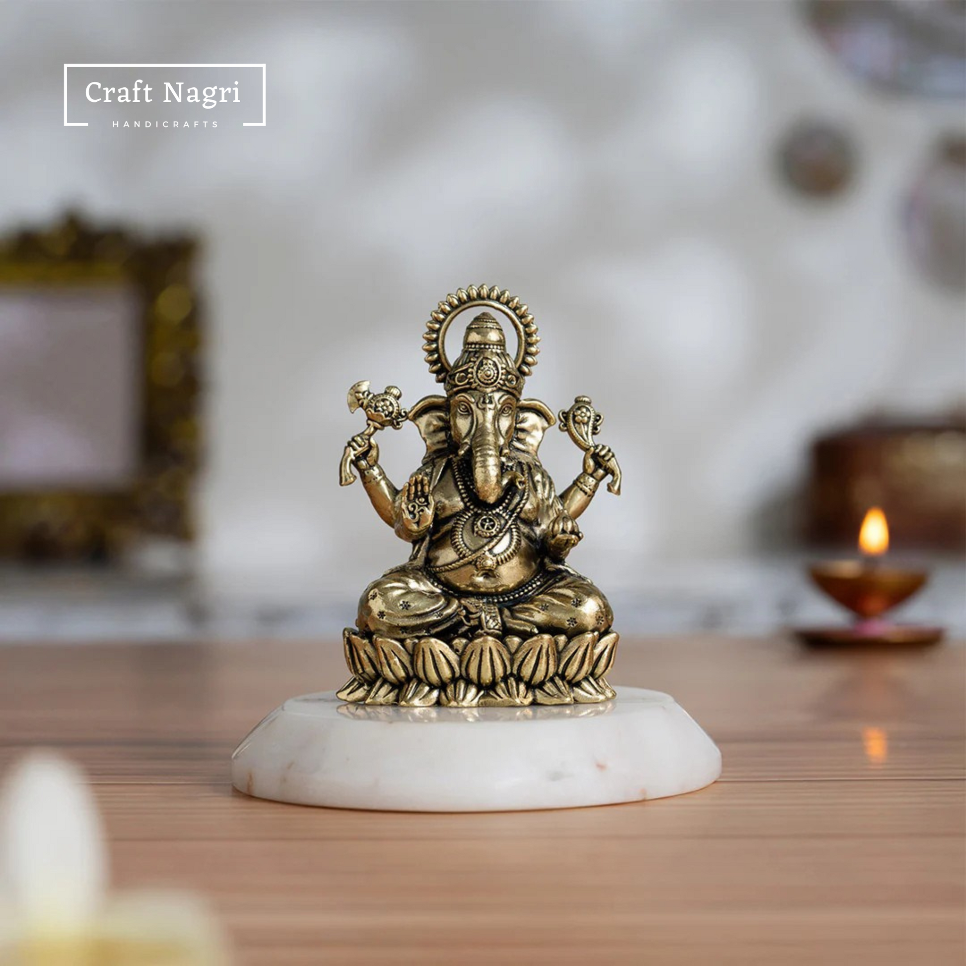 Grace your sacred space with this exquisitely crafted Brass Lord Ganesha Idol, seated majestically on a lotus pedestal. Revered as the remover of obstacles and the harbinger of success, Lord Ganesha’s divine presence is captured in intricate detailing and a radiant antique finish.
