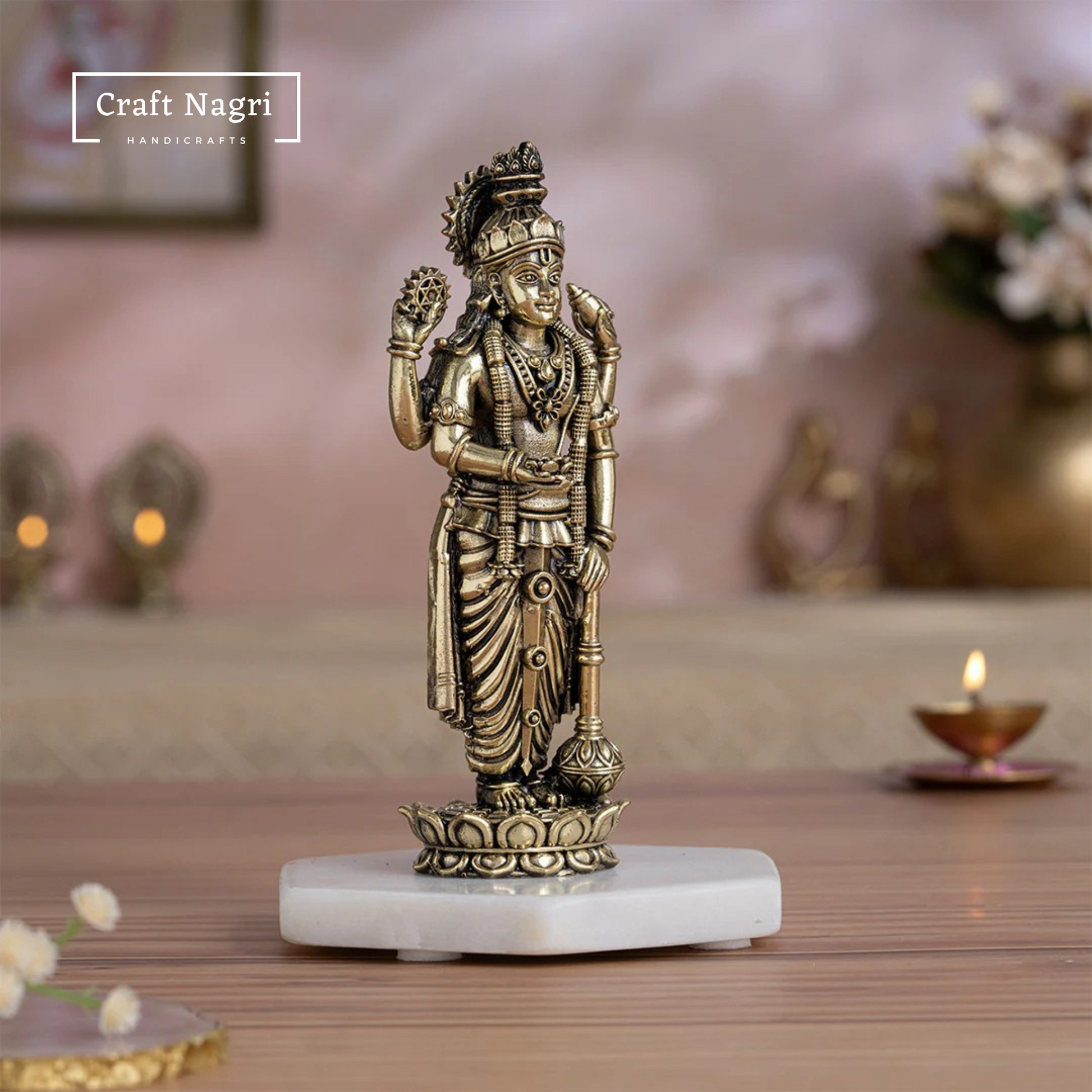 Bring a touch of timeless artistry into your space with this beautifully handcrafted Brass Vishnu Idol, designed with attention to detail and traditional elegance. Made entirely from solid brass, this piece showcases classic iconography including the Shankha (conch) and Chakra (disc), often associated with harmony, balance, and protection.