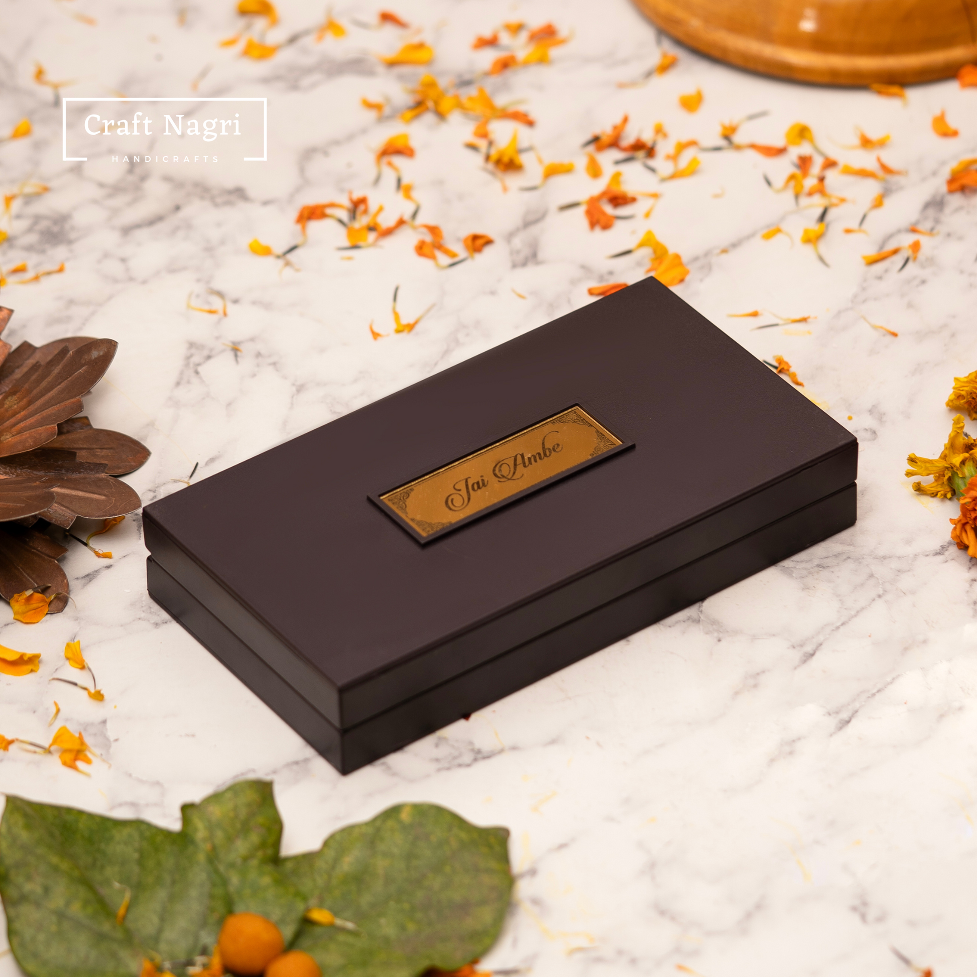 Invoke the blessings of Maa Durga with this exquisite gold-plated Pocket Temple. Featuring an intricately designed image of Goddess Durga along with her nine divine forms (Navdurga), this sacred keepsake embodies strength, protection, and devotion.
