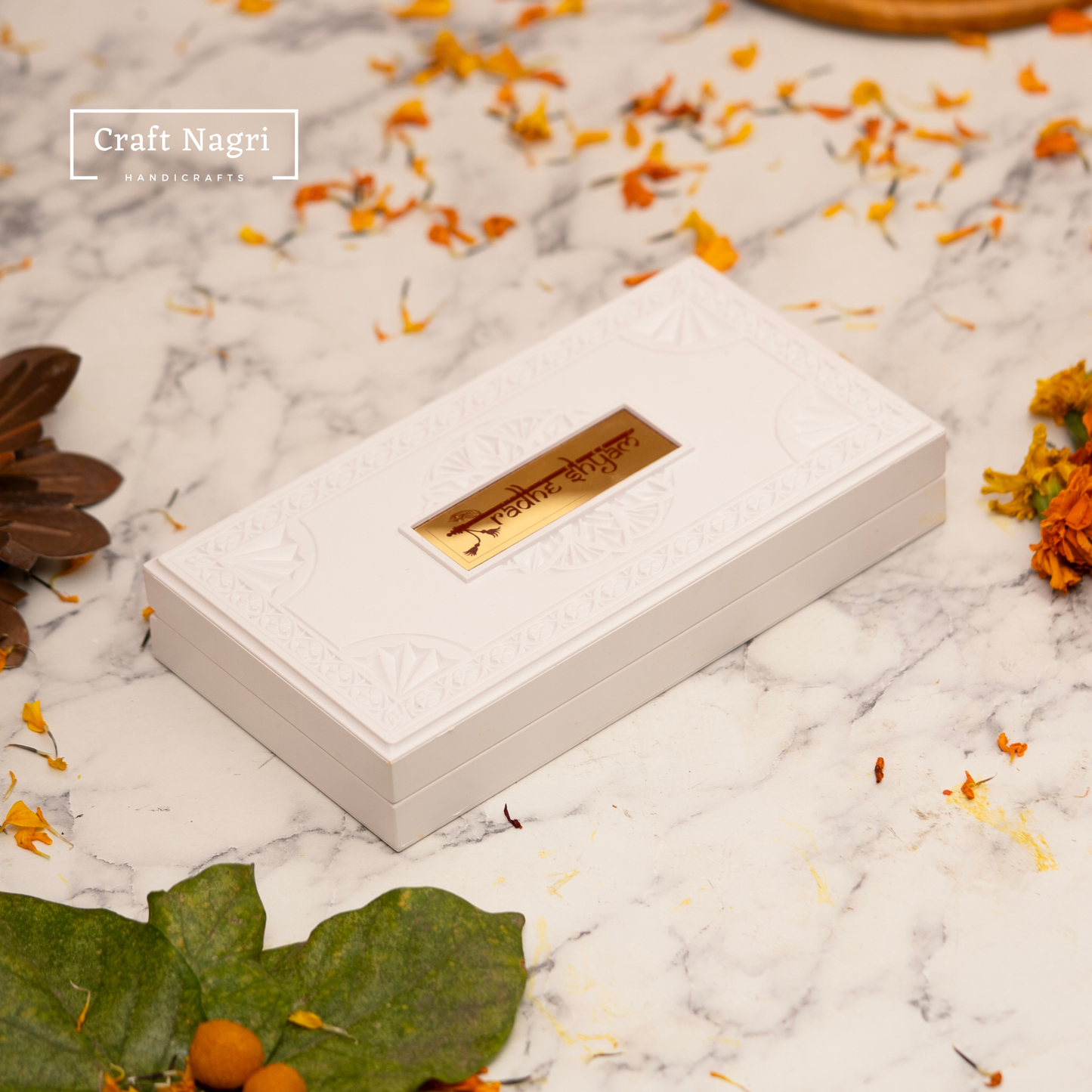 🔹 Symbolic Charan Paduka – Representing guidance and inner peace, this detail adds depth to the design.