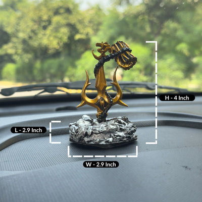 Elevate your car interior with the divine grace of Lord Shiva's Trishul and Damru, encapsulated in this beautifully crafted resin idol.