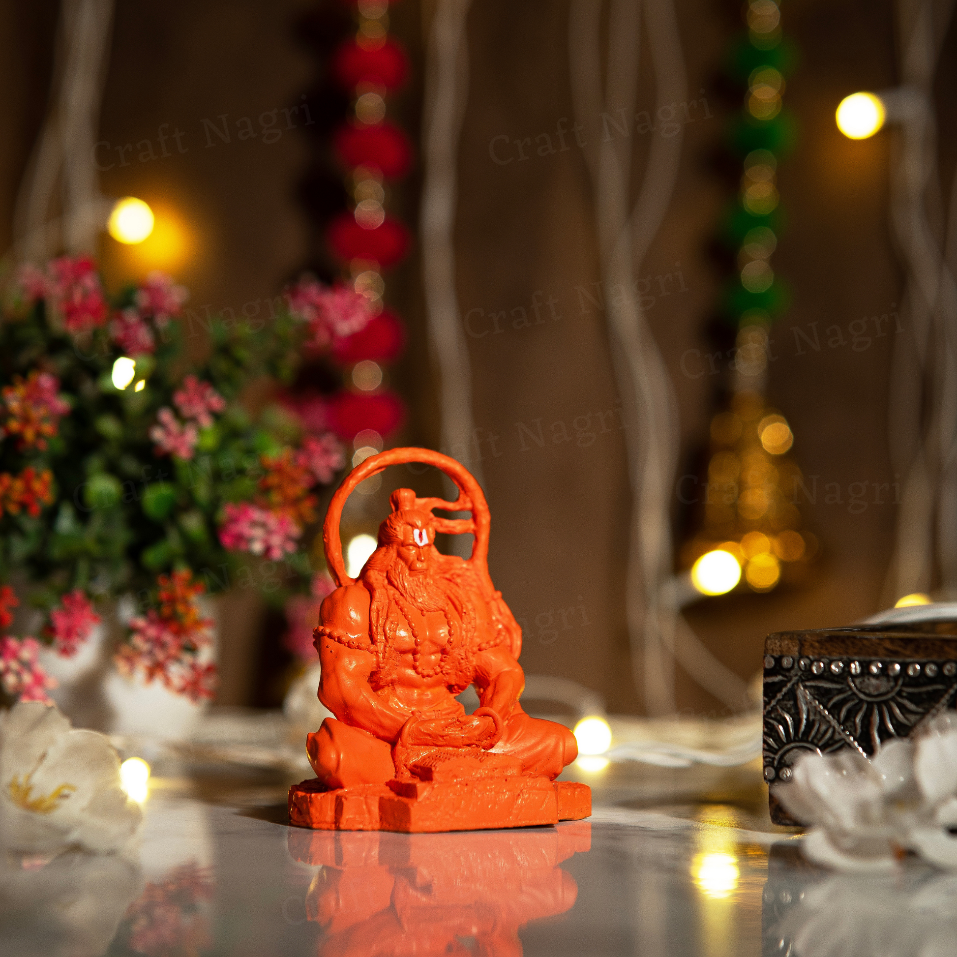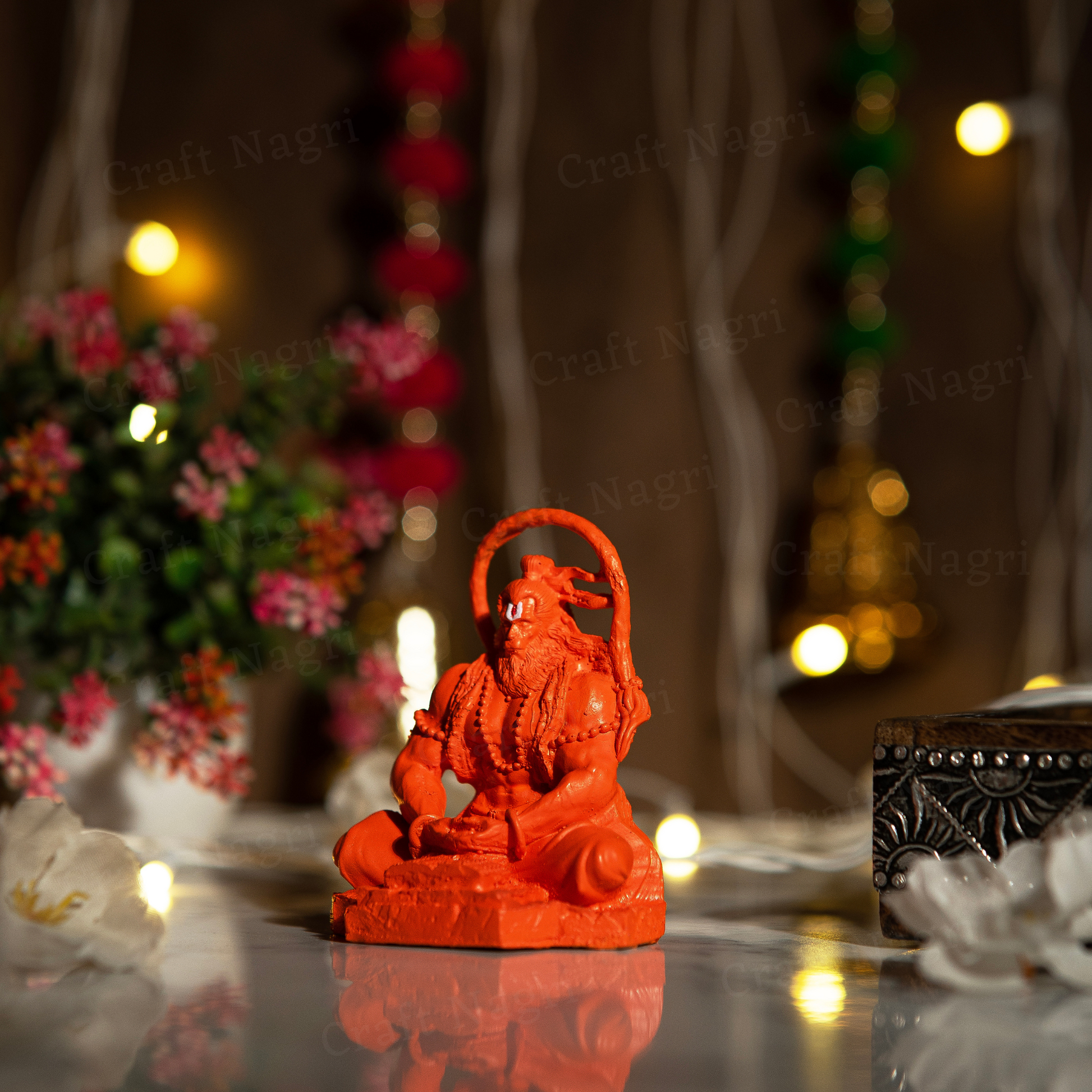 Introducing the Meditating Hanuman Car Dashboard Idol in Orange, a serene and spiritually uplifting depiction of Lord Hanuman in a meditative pose. Crafted with intricate details, this compact idol showcases Lord Hanuman seated peacefully, symbolizing inner strength, devotion, and calm. The vibrant orange color represents energy and spirituality, adding a vibrant yet soothing presence to your car.