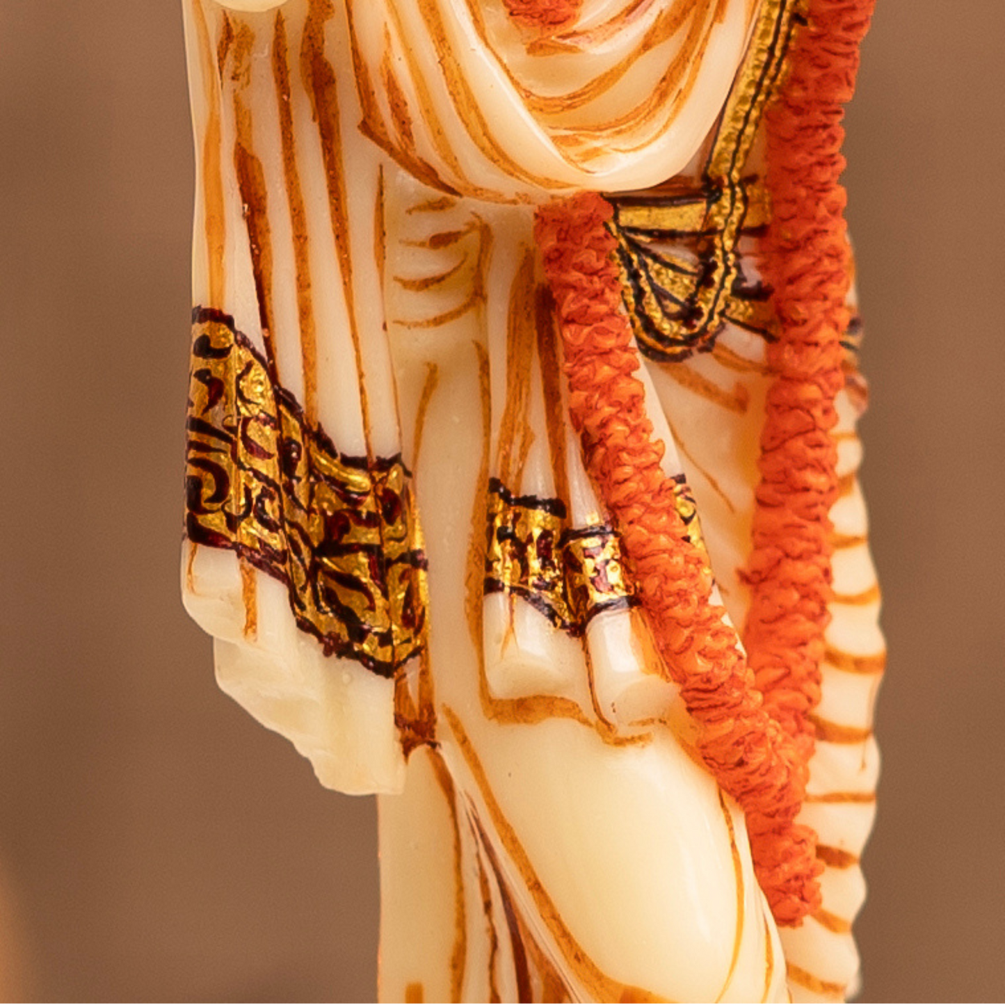 Meticulously handcrafted from high-quality Resin and marble Dust, this masterpiece features delicate hand-painted details, intricate gold accents, and a beautifully adorned floral mala, enhancing its divine appeal. The natural marble texture adds to its timeless beauty, making it a perfect spiritual centerpiece.