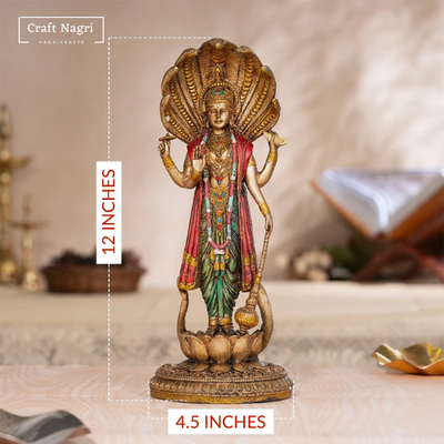 Enhance your spiritual environment with this stunning Standing Vishnu with Seshnag Idol—a powerful symbol of divine protection, wisdom, and cosmic harmony.