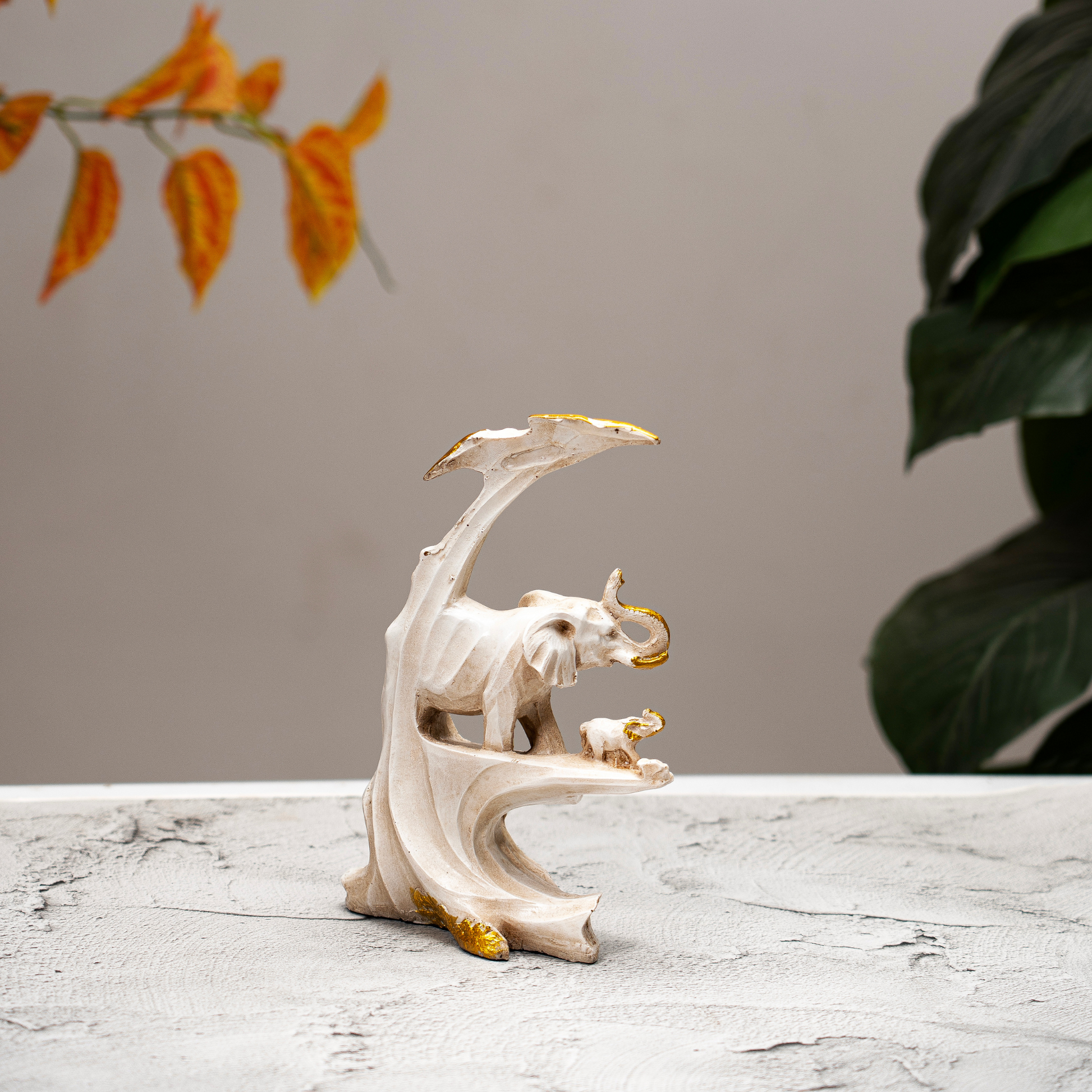 The intricate design of the tree and the elephants captures the essence of wildlife and harmony in nature, making it a perfect décor piece for any home. The adult elephant, known for wisdom and protection, is seen guiding and sheltering its young, adding a layer of emotional depth to the statue.